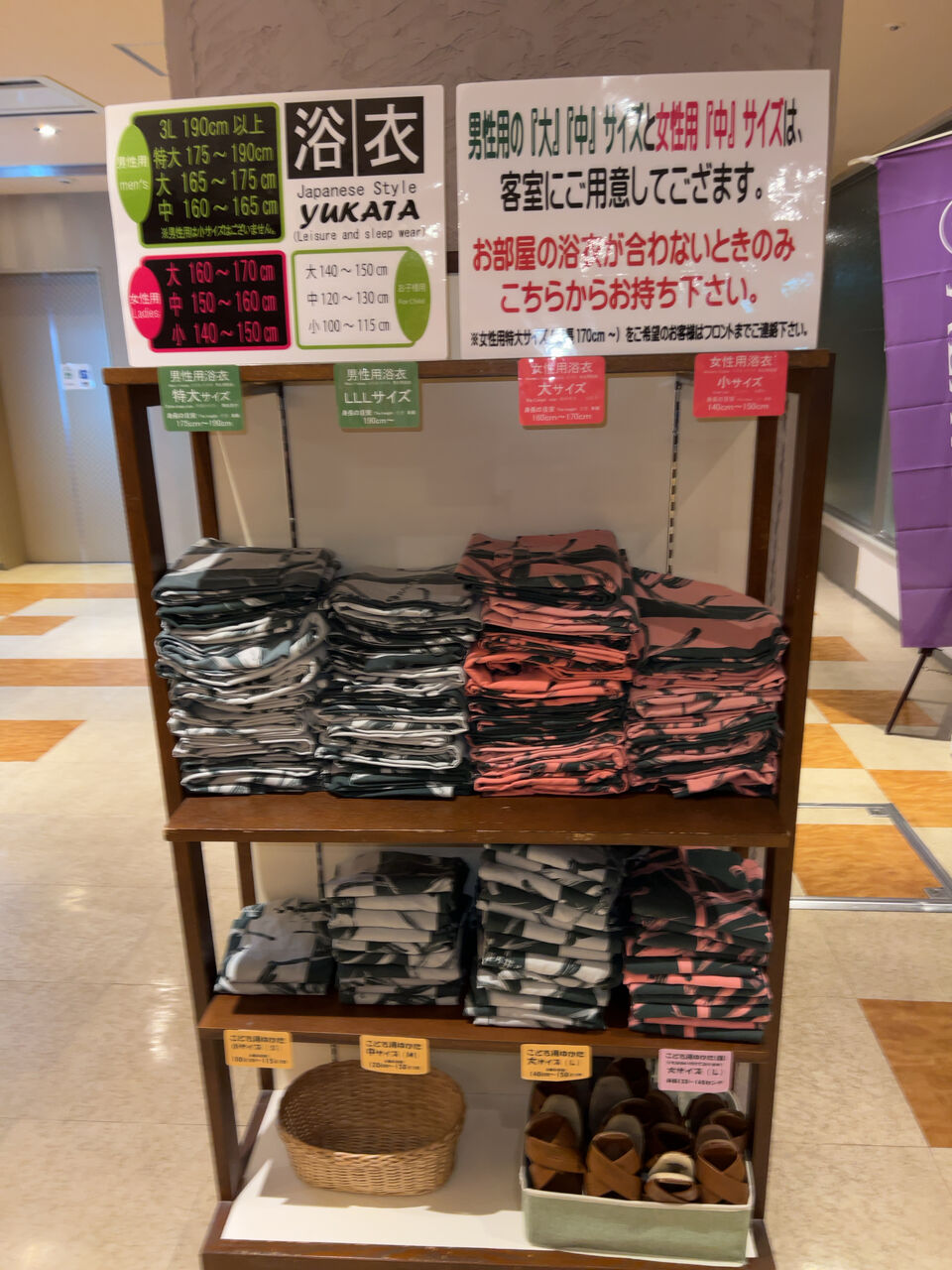 部屋の浴衣のサイズが合わない場合の浴衣。