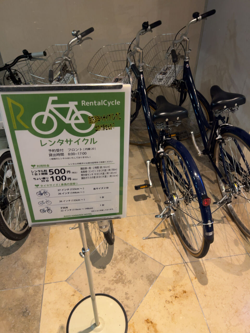 レンタサイクル30分100円。2時間500円。