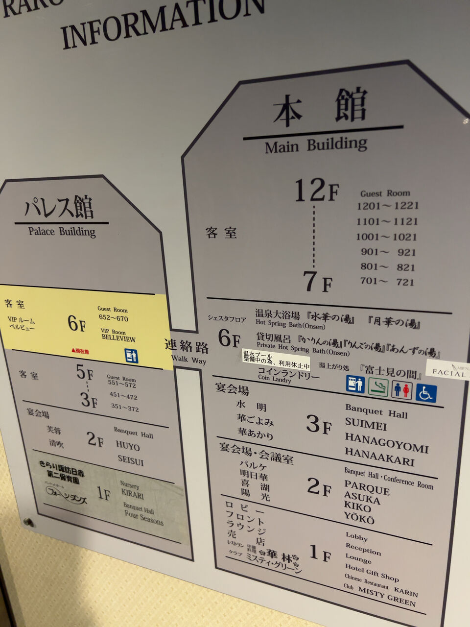 チェックイン時にもらったカードに6階にある本館とパレス館をつなぐ通路が記載されている。