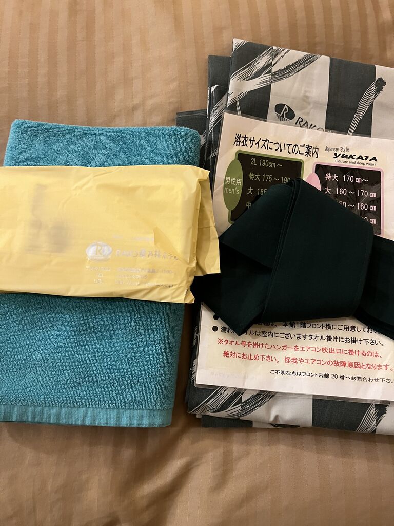 浴衣、タオル。