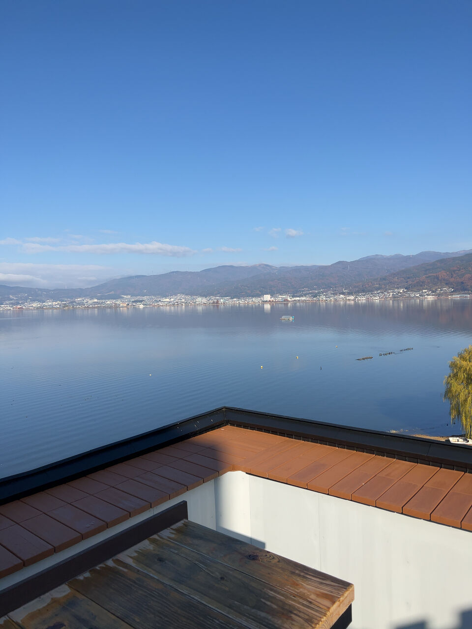 湖畔のテラスから見える風景。