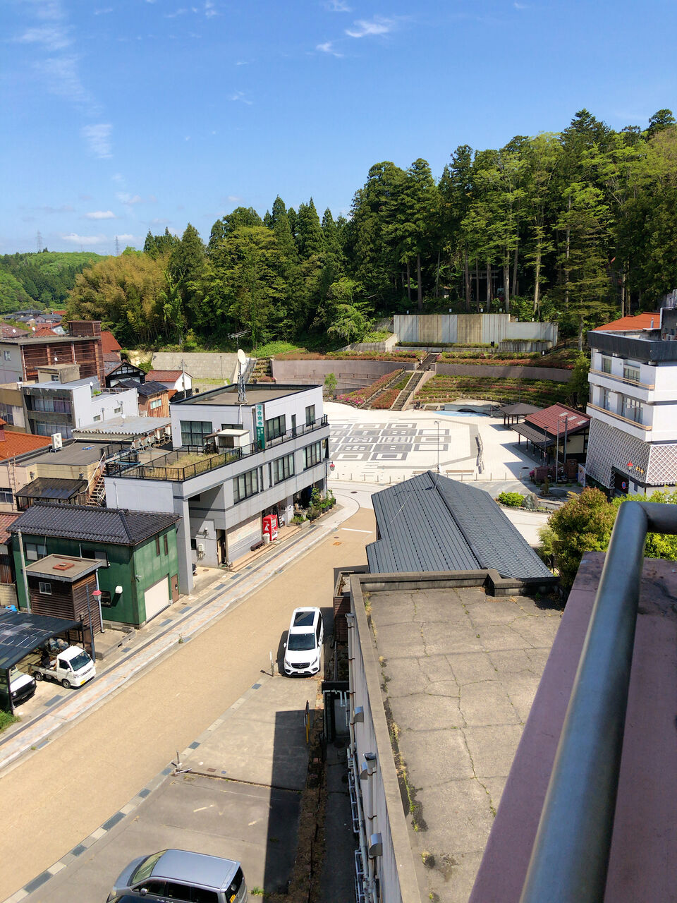 窓の外の景色。総湯が見える⇒こちら