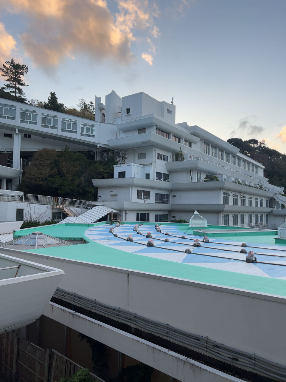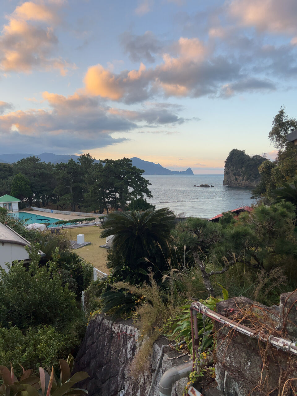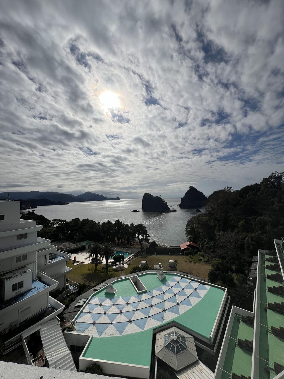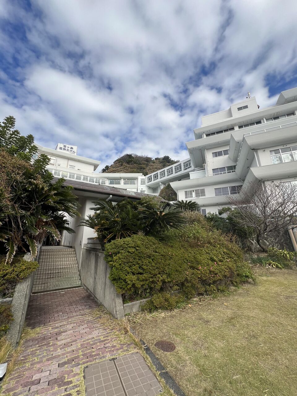 入口方面からみるとそれほど大きくは見えないが、海側から見るとそこそこ大きなホテルだとわかる。