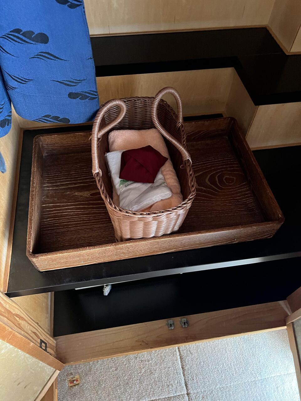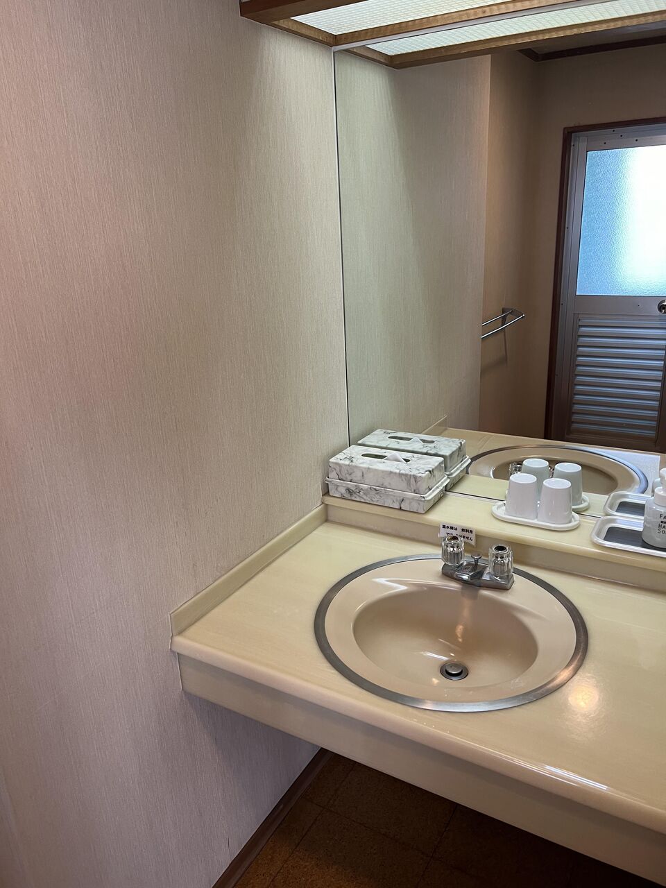 バス。客室温泉に期待したけど、このあまりに狭い浴槽の展開は予想できなくて残念だった・・・。温泉は超絶ヌルヌルしていて最高なんだけどね。