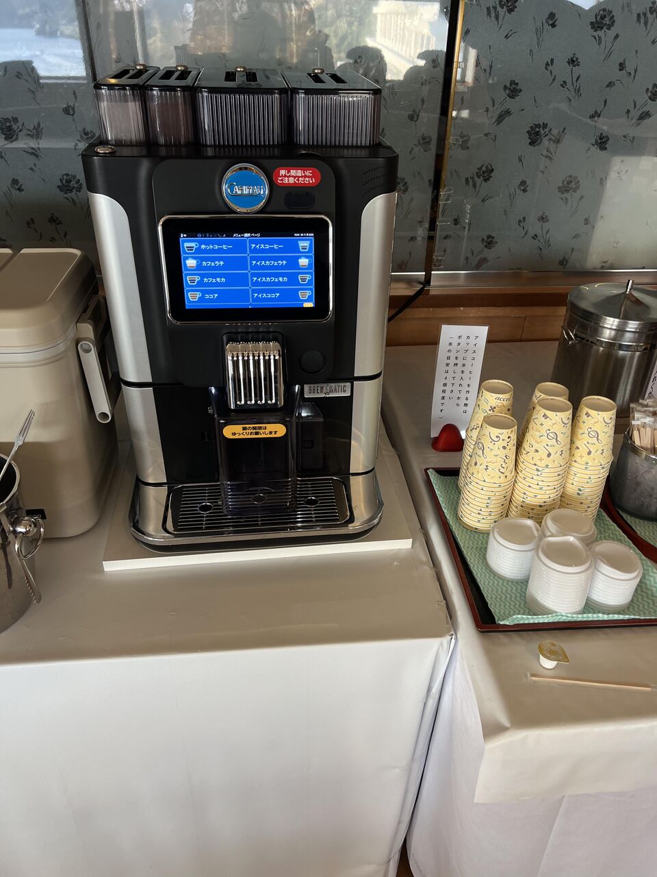 ドリンク無料。コーヒー、ココア。