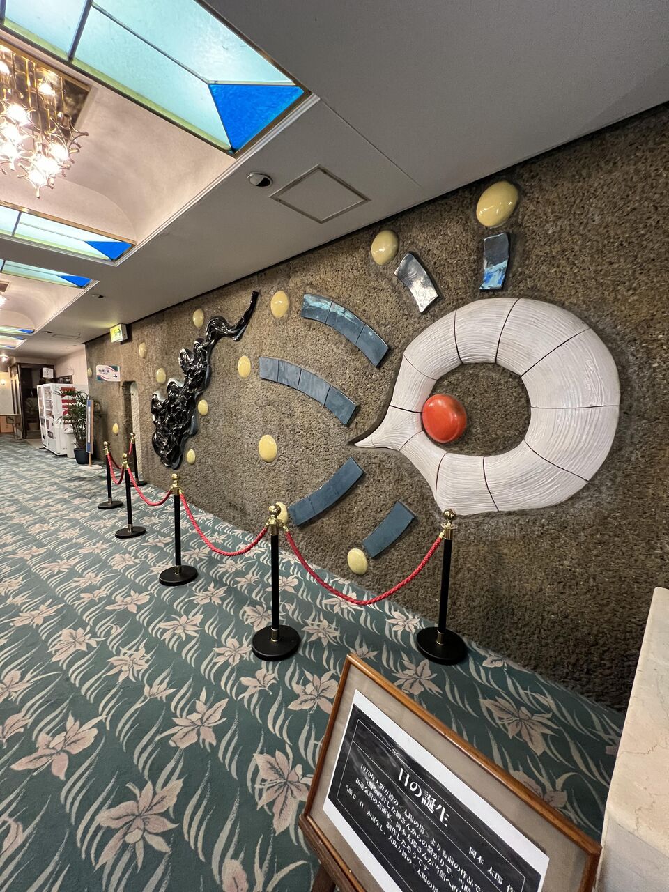 岡本太郎デザインのレリーフ。昭和40年のホテルオープン時には岡本太郎は時代の寵児だった。