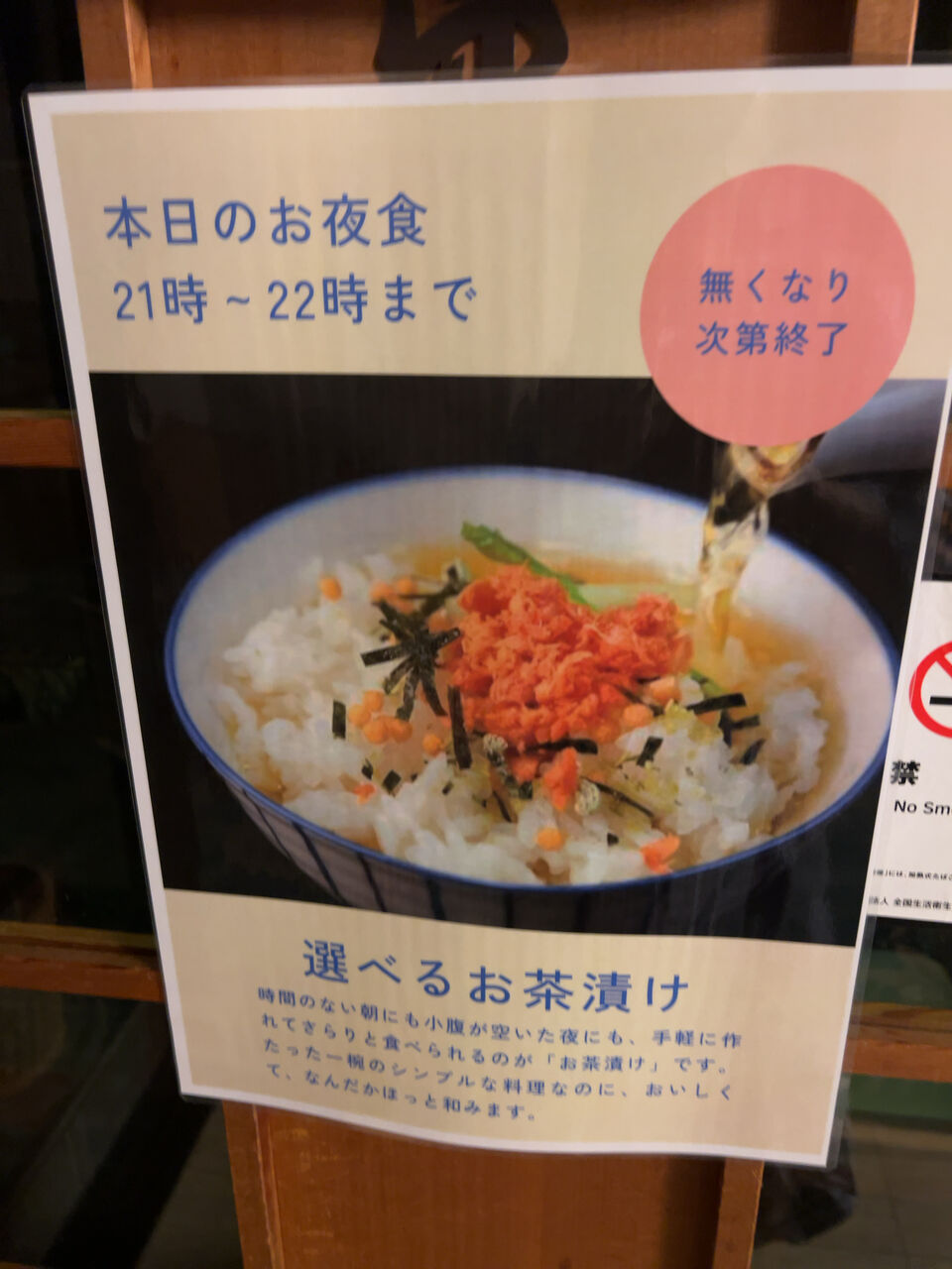 夜食サービス。21時~22時まで。