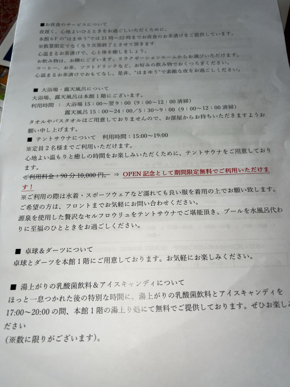 湯上りアイス無料。