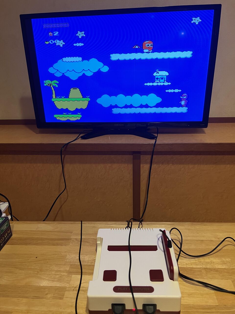 一瞬ファミコンミニかとおもったけど、ファミコンのバッタもんだった・・・・。ゲーム数はやたらあるけど、どれもクオリティー低い。このゲーム機に2部屋使うなんてもったいない。ファミコンミニをプレゼントしたくなった。