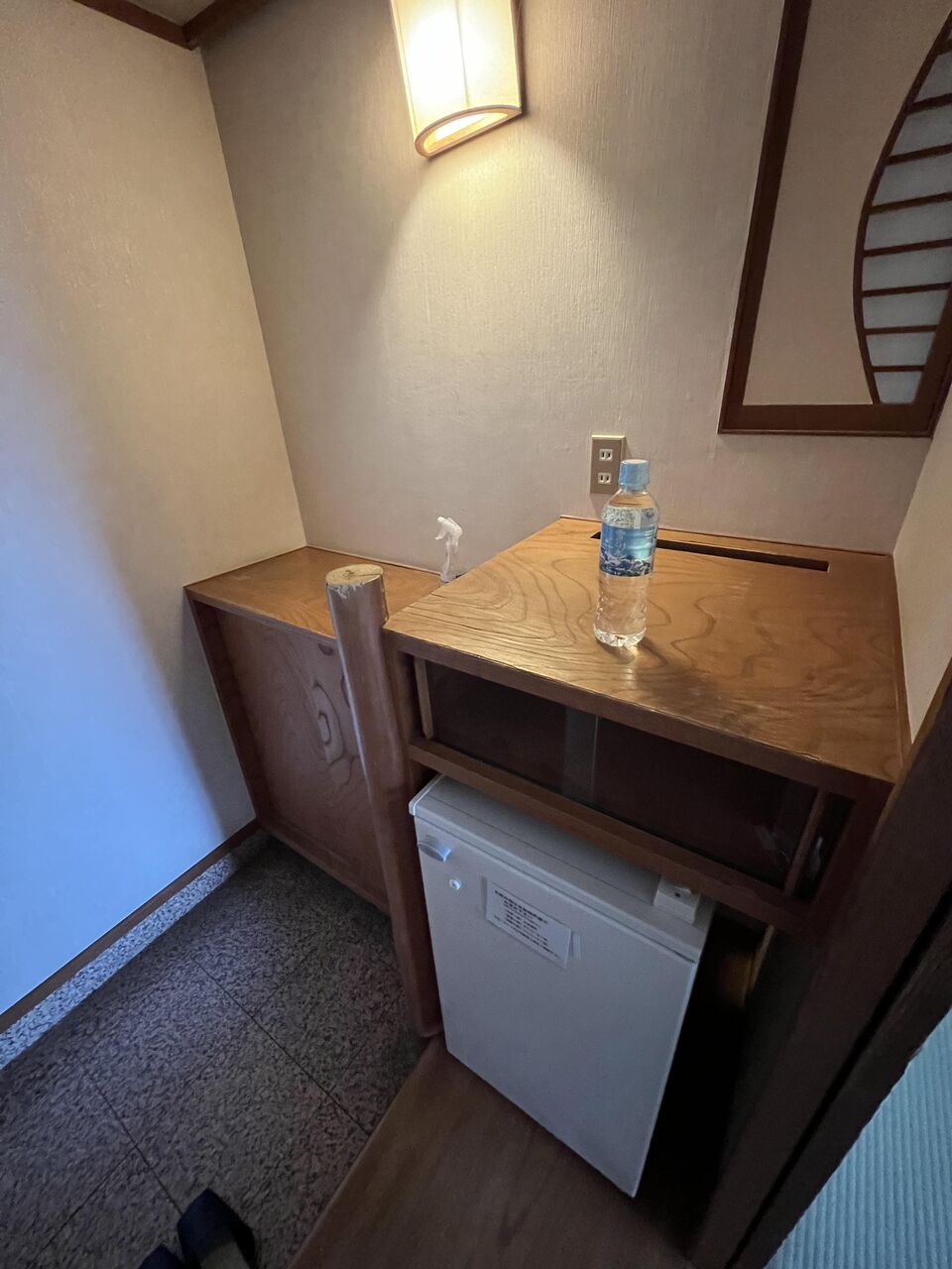 玄関。冷蔵庫、ミネラルウォーター。