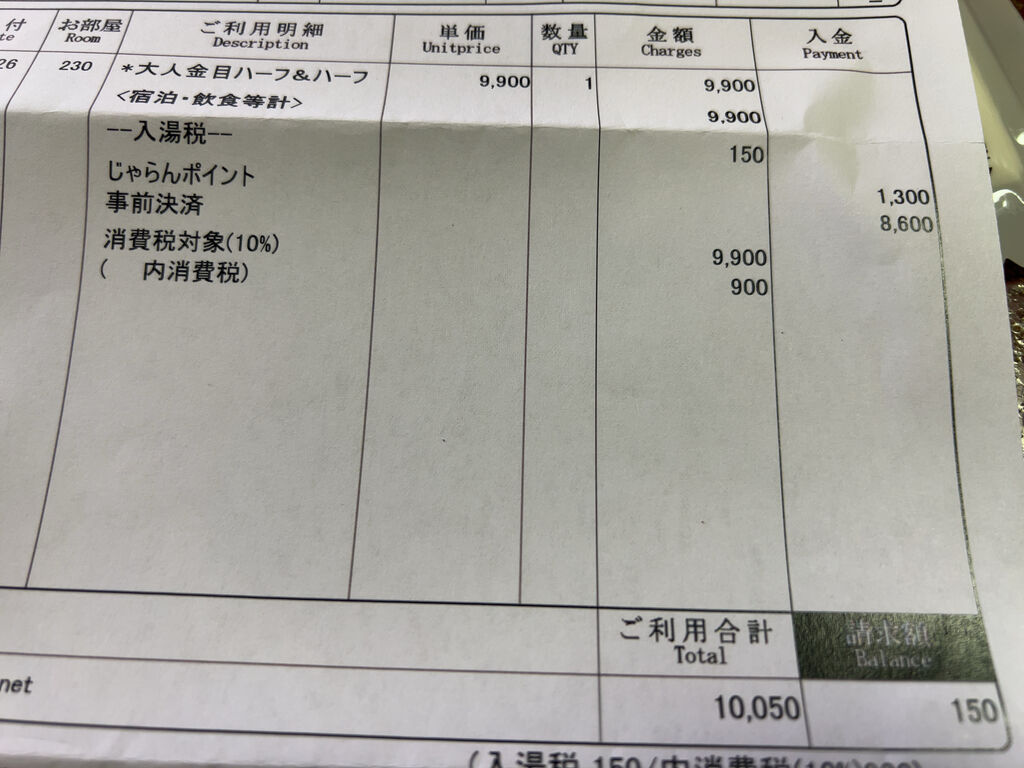 1泊3食+酒飲み放題で1万円程度。かなりのコスパだった。