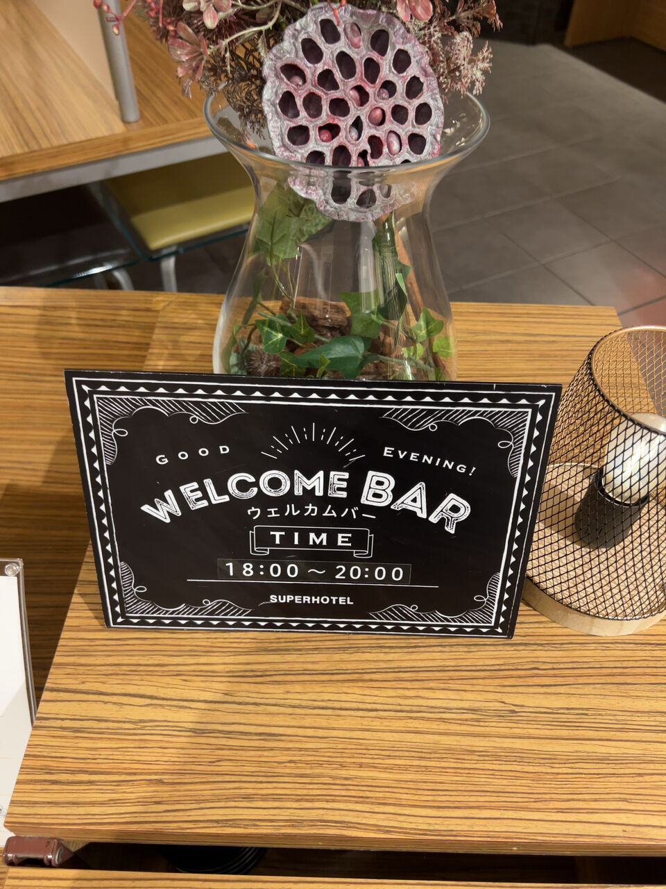 ウェルカムバーで酒飲み放題18:00~20:00まで。