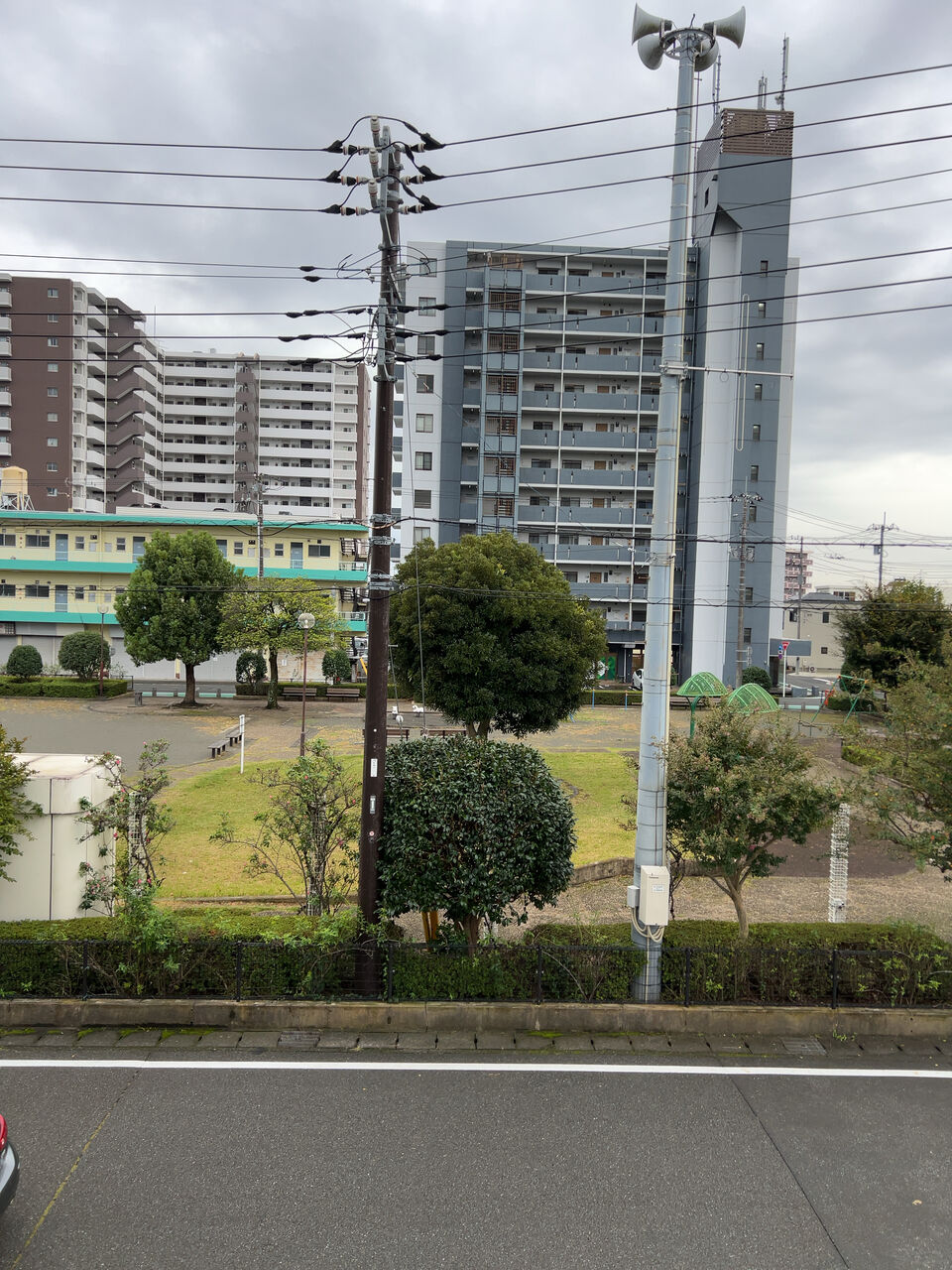 ホテル前は公園。