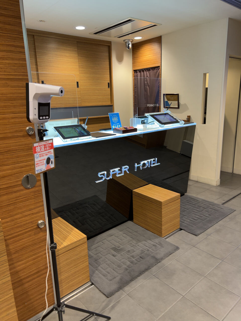 24:00~7:00までフロント前の壁が閉じられる。