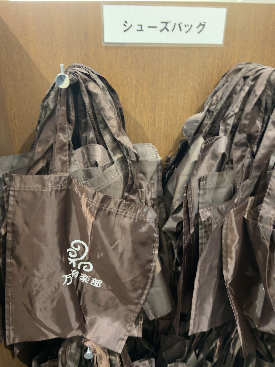 入口付近で靴をシューズバッグに入れる。