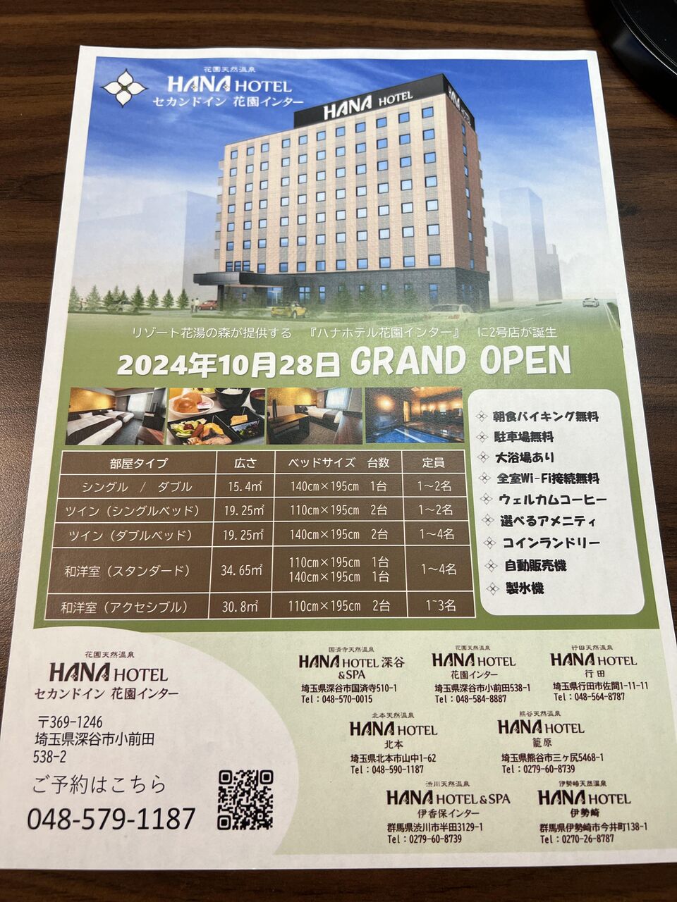 セカンドインハナホテル花園インターが2024年10月、埼玉県深谷市にオープン。ハナホテルフェチの珍安は早速宿泊してきました。