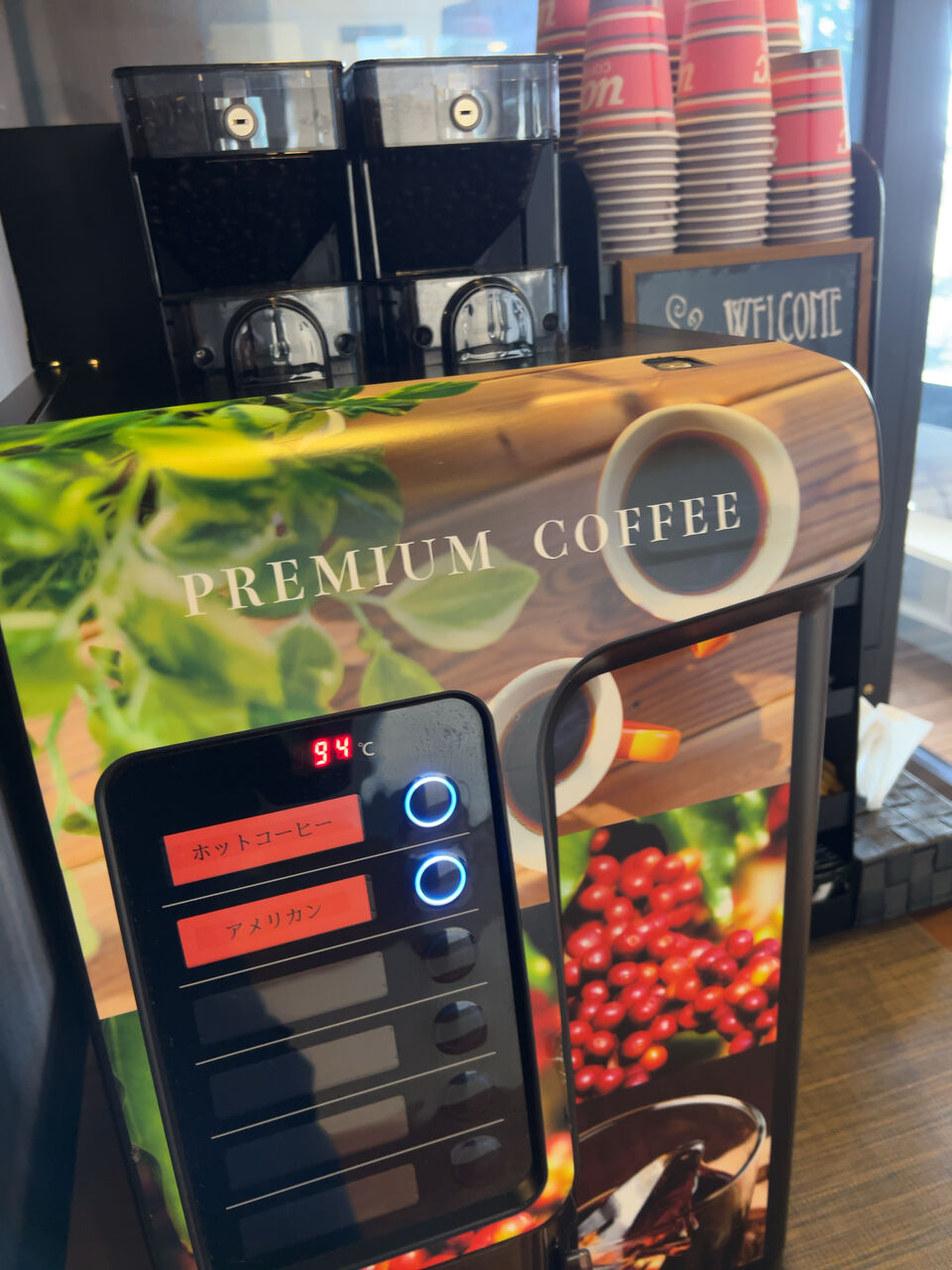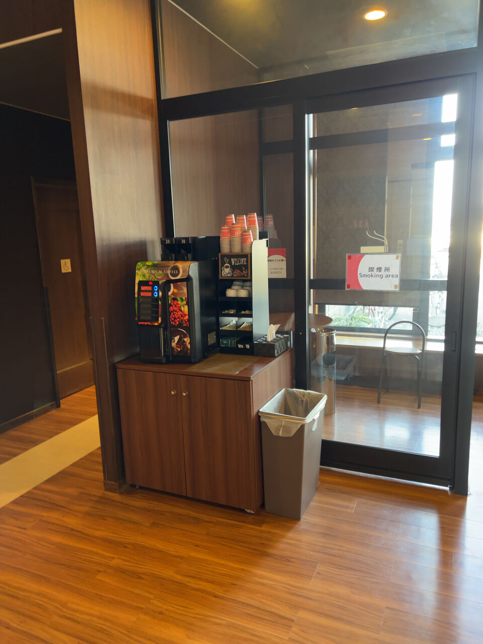 喫煙場。コーヒーサービス。ドリップ式で美味しい。