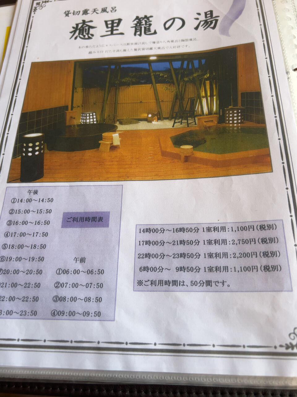 宿泊者有料の貸切風呂。時間によって価格が変動する。