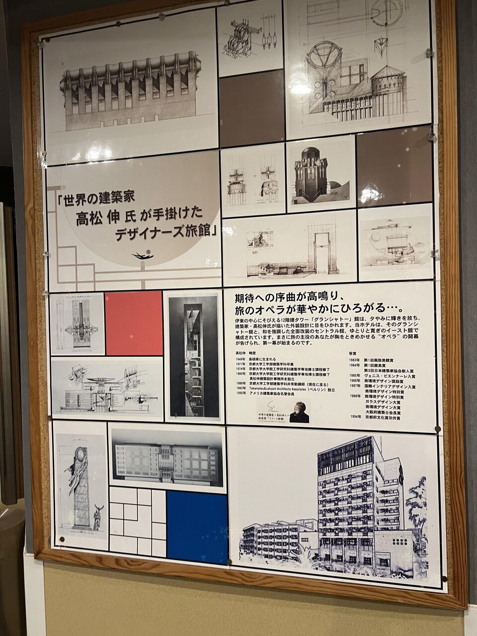 このホテルは高松伸氏が手掛けたデザイナーズ建築。にしては、入口正面から見たホテル全体の広がりにちょっと違和感を感じるなぁ・・。