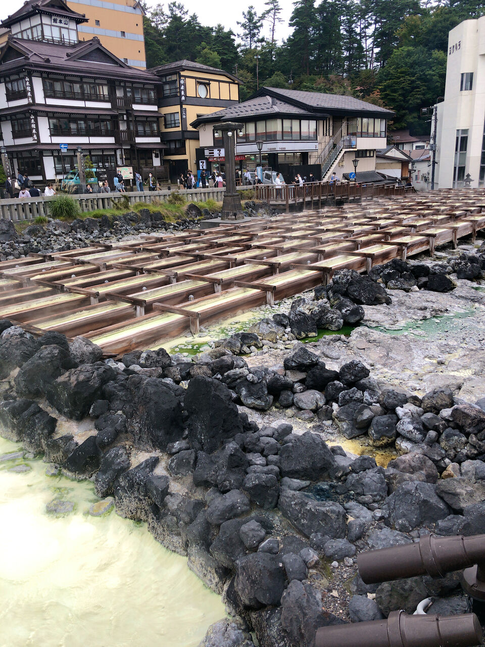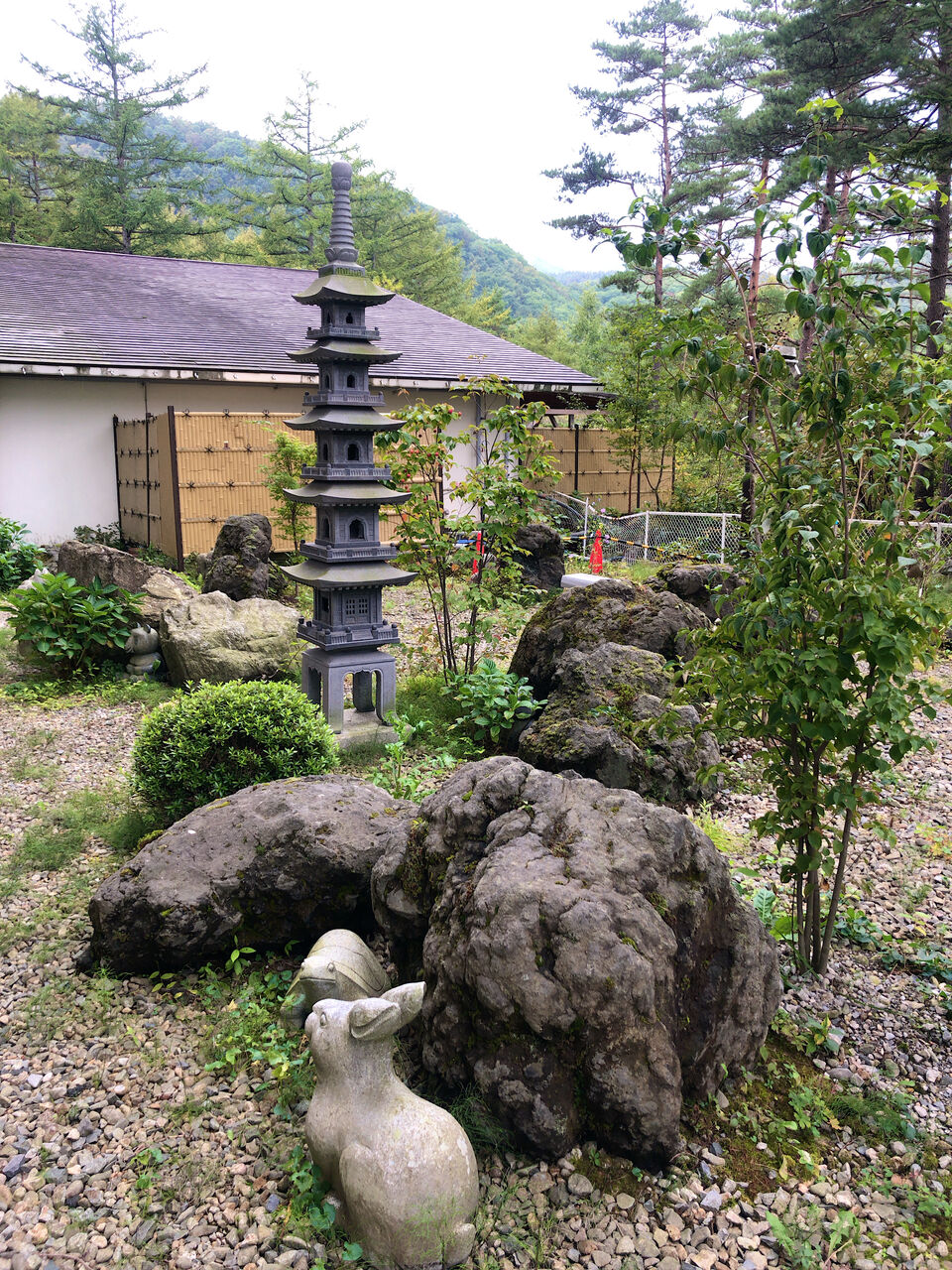 露天風呂。西の河原温泉公園の露天風呂と同じ万代鉱源泉を使用している。酸性湯なので傷口に染みる。