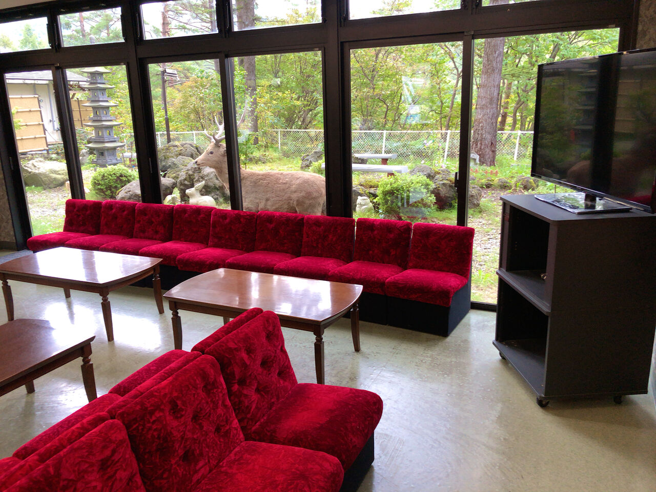 珍 :★★★☆☆ ロビーの窓に動物のはく製