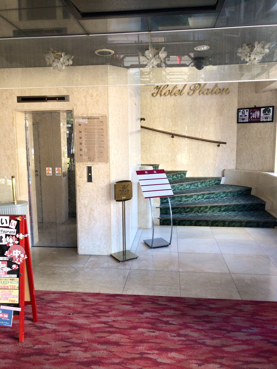 道路を挟んで姉妹館ホテルグリーンプラザ。このホテルのフロントはホテルプラトンとなっている。