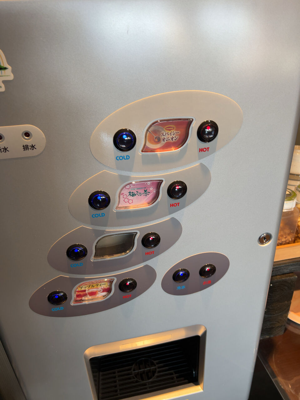 アップルティー、塩こぶ茶、スパイシーオニオン。