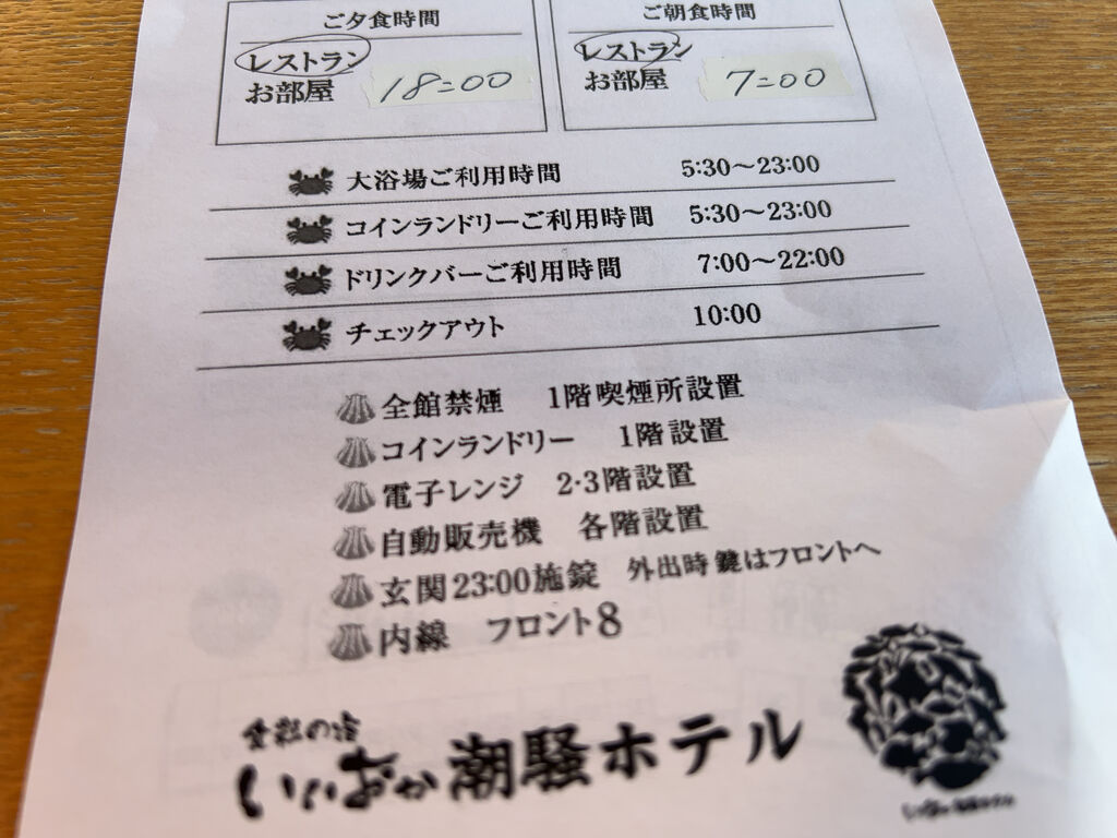 ホテルのタイムテーブル。