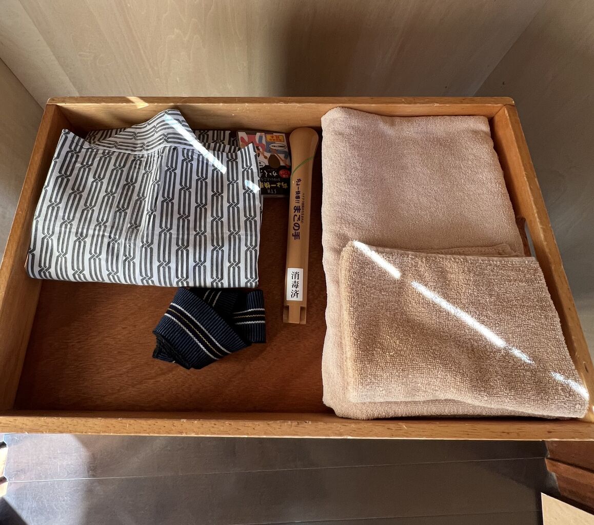 タオル、浴衣、帯。