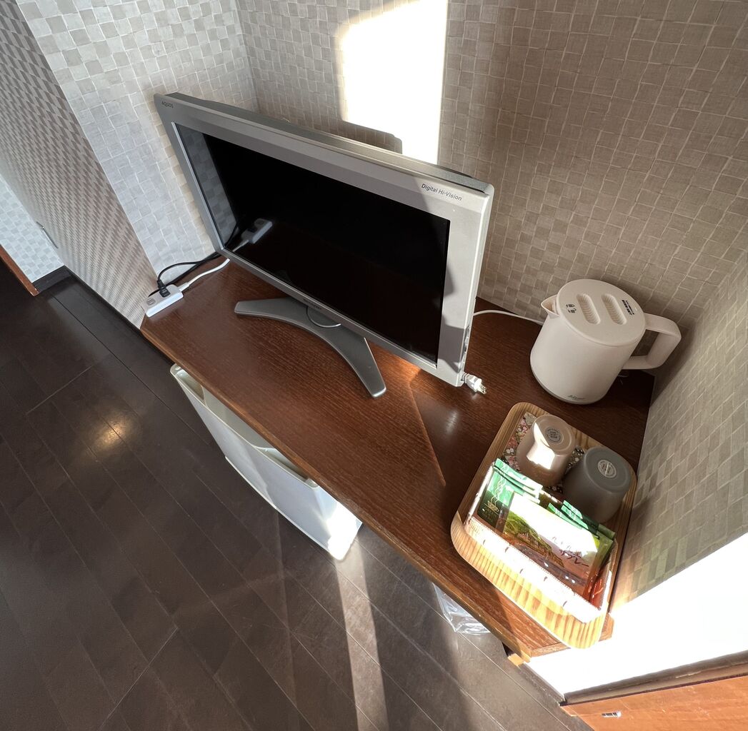 テレビ、お菓子、温水ポッド。