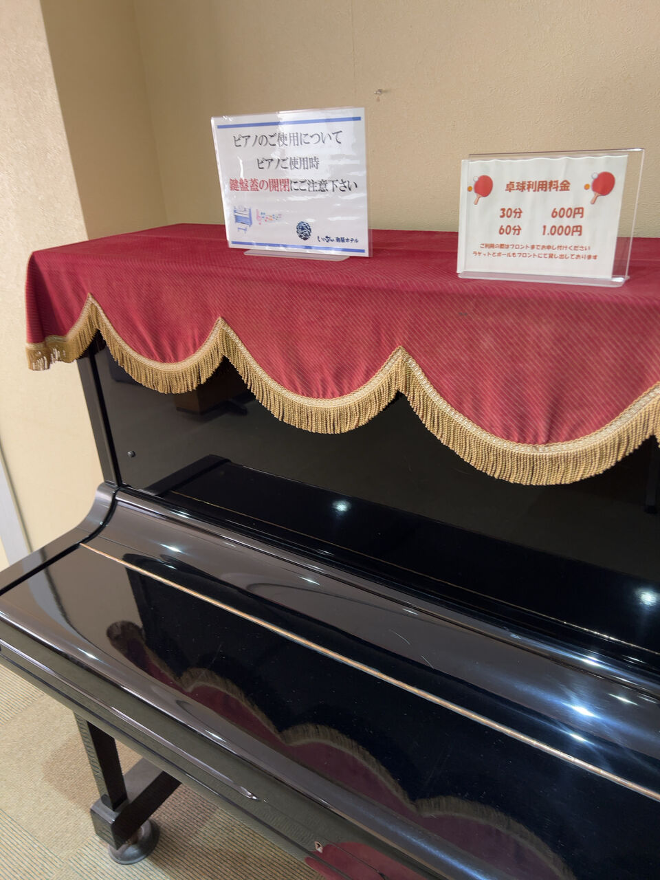 ピアノ、卓球料金30分600円。