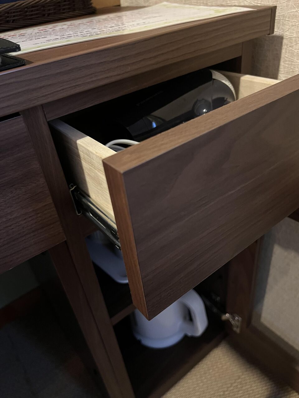 温水ポット、ドライヤー。