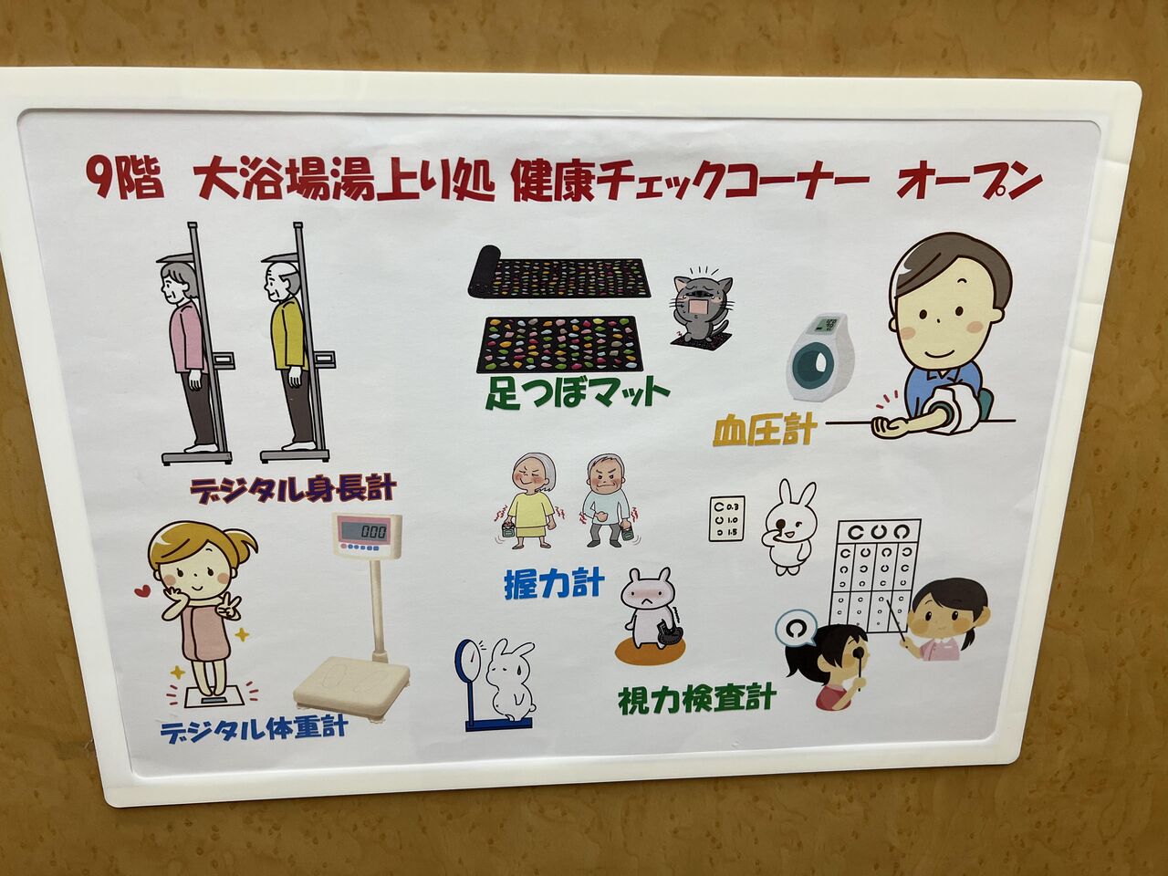 大浴場近くの健康チェックコーナー。