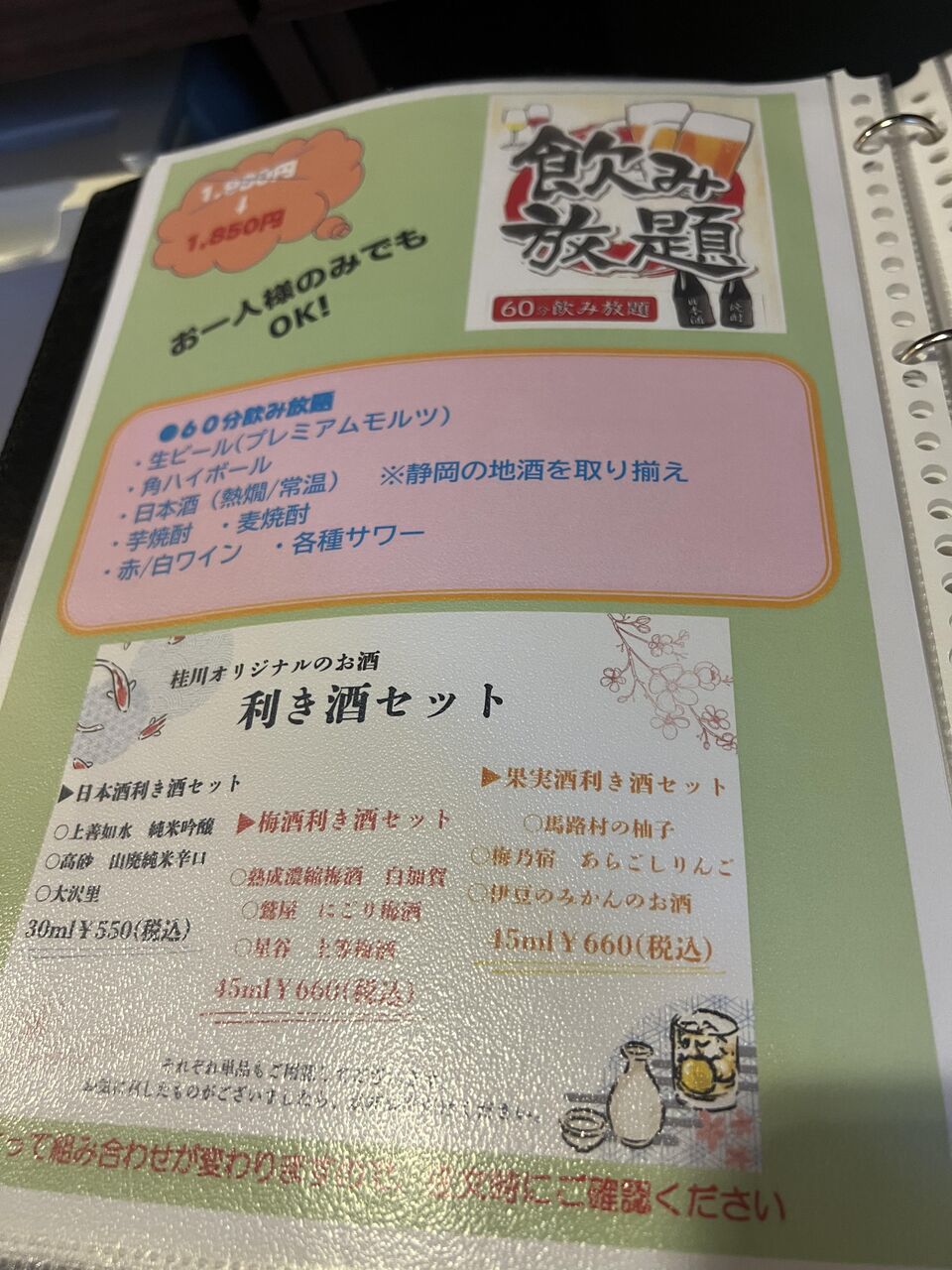 夕食バイキングの酒飲み放題の中身。