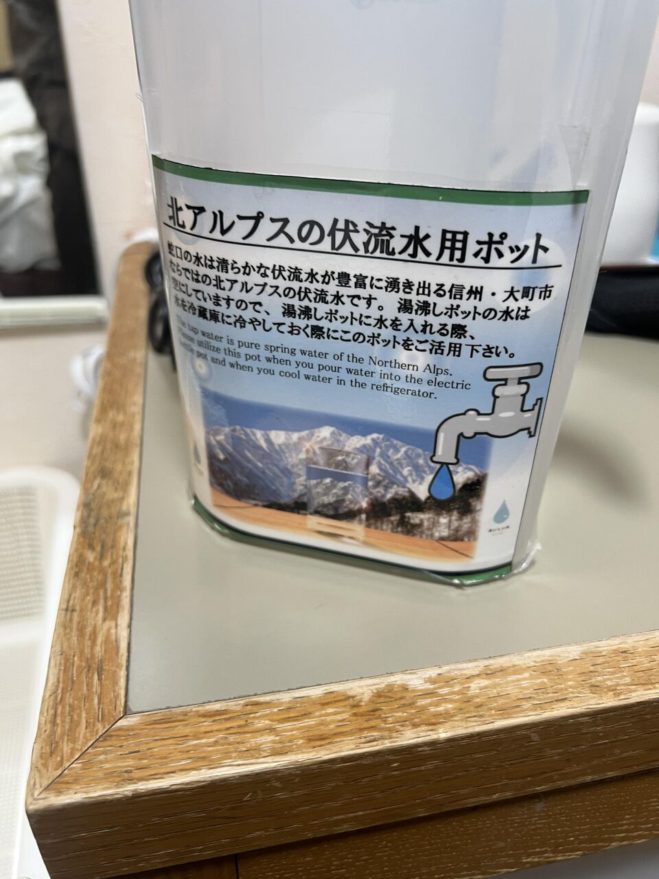 蛇口からは北アルプスの伏流水がでる。浴槽も北アルプスの伏流水風呂を満喫できる。