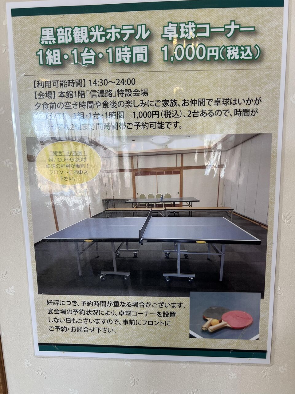 卓球場。1時間1000円。BBHホテルは無料が当たり前だと思っていた・・・。