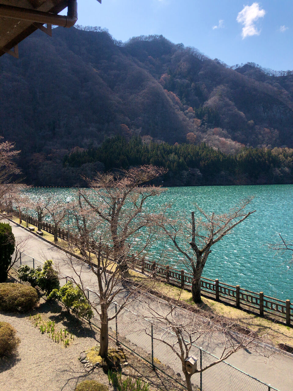 窓の外の湖。
