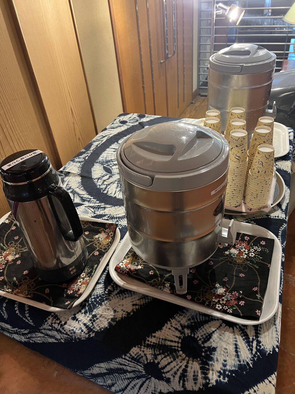 お菓子、お茶、ミネラルウォーター。