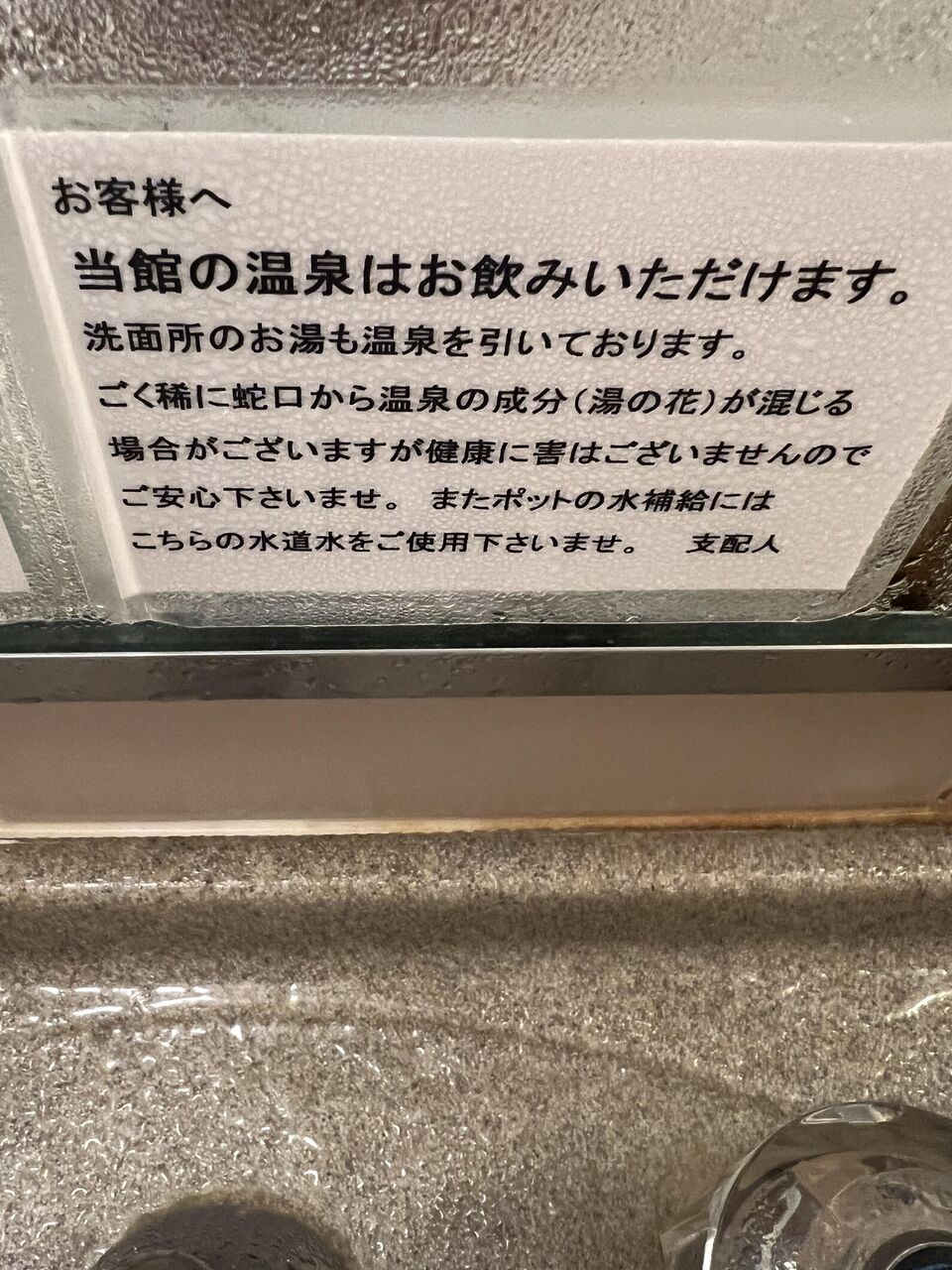 洗面台のお湯も温泉。温泉の飲泉し放題。