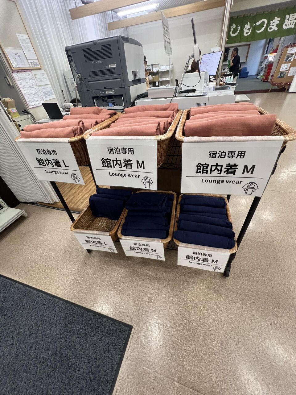 新たなフロント。おそらく、このホテルは健康ランドとしての側面が強いから浴場入り口付近に移動したのだと思う。館内着も置かれている。