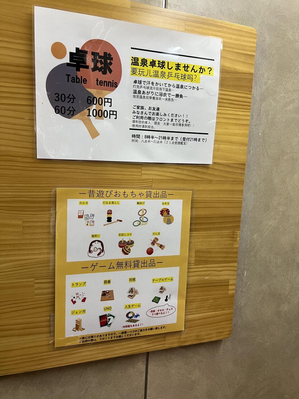 卓球30分600円。